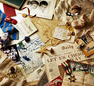 Newspaper cuttings....Certificates......Photographs....Letters....Medals....Family tree....Diaries....Artifacts